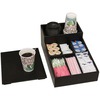 Coffee Condiment Organizer features multiple compartments to organize coffee cups, lids, cream, sweetener, tea, stirrers and more. Removable lid can also be used as a beverage preparation surface. Faux-leather material provides a professional look in a cost-efficient design. Soft velveteen protects surfaces from scuffs and scratches. |