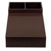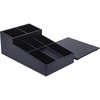 Coffee Condiment Organizer features multiple compartments to organize coffee cups, lids, cream, sweetener, tea, stirrers and more. Removable lid can also be used as a beverage preparation surface. Faux-leather material provides a professional look in a cost-efficient design. Soft velveteen protects surfaces from scuffs and scratches.
