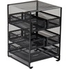 Network 6-Compartment Coffee Cup and Condiment Countertop Organizer is equipped with six compartments to organize and store all your coffee station and accessory needs. Bottom tier is ideal for storing creamer, tea packets, sugar, sweetener, coffee pods, stirrers and more. Compartments fit a large amount of condiments and accessories. Top tier is great for holding coffee cups and lids in one location for convenient access. Versatile design fits 10 oz., 12 oz. and 16 oz. cups comfortably. Lightweight, durable construction is food-safe and easy to situate on countertops, desks and other areas. Long-lasting, metal material withstands daily use from office employees, warehouse staff, hotel patrons and more. Simply wipe clean with hot water and cleaning product to reduce dirt and germs.